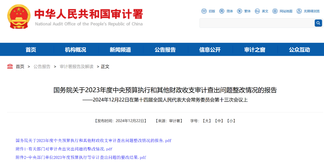 針對審計查出的問題,財政部督促各地落實各項化債措施,嚴肅查處新增隱性債務問題,公開通報8起隱性債務問責典型案例;印發全口徑地方債務監測工作方案,啟動全國集中填報數據和匯總分析工作,會同相關部門加強數據共享應用。工業和信息化部發揮清理拖欠企業賬款專班牽頭作用,多次召開清欠專題會議,健全周調度、月統籌、季通報機制,2024年赴各地開展4輪調研督導幫促;搭建線上清欠臺賬系統,督促各地“一欠一檔”,點名通報未按期完成整改的地方;制定《中央辦公廳、國務院辦公廳關于解決拖欠企業賬款問題的意見》相關配套措施,會同有關部門修訂保障中小企業賬款支付條例,從源頭上鞏固清欠行動成效。金融監管總局制定整改方案并及時跟蹤進展,綜合采取約談、窗口指導、實地督導、發布監管提示等措施,督促有關金融機構規范金融產品發行,重點防范新增地方政府隱性債務,會同有關部門研究建立融資平臺債務風險監測預警機制,做好金融支持融資平臺債務風險化解相關工作。“地方債務管理不夠嚴格”問題包括2個方面:一是違規舉借債務尚未全面停止;二是拖欠賬款有所新增。產生上述問題的原因是,部分地方受經濟基礎薄弱疊加土地出讓收入下滑、融資平臺“造血”能力差等因素影響,從信托和保險機構、地方金融組織等多種渠道違規舉債、虛假化債,也反映出政績觀、債務觀仍然存在偏差;相關法律法規雖然對無預算采購、超預算審批、禁止墊資建設等有規定,但不夠細化、剛性不足,執行寬松軟使違法成本低,造成新增拖欠等問題屢禁不絕,加之地方財力緊張,清欠缺乏“源頭活水”。(一)關于“24個地區所屬國企通過在金融資產交易所違規發行融資產品、集資借款等方式向社會公眾融資,至2023年底余額373.42億元,主要用于支付到期債務、發放人員工資等,形成政府隱性債務112.58億元”的問題。金融監管總局分類推進整改:一是對信托、保險以及融資租賃、商業保理等機構提供的融資,認真履行行業主管和指導監督責任,督導有關金融機構及地方金融組織加大清償力度,研究制定加強保險資管公司債權投資計劃規范管理、推動信托業高質量發展等政策文件,推動相關金融業務回歸本源,防范地方國企借道此類業務新增地方政府隱性債務;重點關注區縣級融資平臺債務涉眾風險,對風險苗頭早識別、早預警,及時向地方政府提示風險。二是對涉及地方金融資產交易所的融資,向證監會提示風險,推動有關地方制定資金籌集方案和還款計劃,大幅壓降存量風險。財政部督促有關地方通過安排預算資金償還、地方政府債券置換、清退涉眾融資等落實整改要求。截至2024年9月底,24個地區已整改問題涉及資金89.41億元;對其他債務,正在籌措償還資金或錄入隱性債務統計監測系統等,并制定了分年償還計劃。(二)關于“10省市56個地區在按要求建立拖欠臺賬鎖定存量后,2023年3月以來又新增拖欠76.31億元,其中5個地區在無預算安排、未落實資金來源的情況下安排車站等項目建設,新增拖欠69.5億元。此外,還有7省30個地區通過直接銷賬、將無分歧欠款改為有分歧欠款等方式,虛報2023年完成存量清償53.28億元”的問題。工業和信息化部推動有關部門加強對地方政府投資項目監管,嚴肅查處上述5個地區在無預算安排、未落實資金來源的情況下安排項目新增拖欠行為;同時會同清欠專班各成員單位堅持舉一反三,著力提高清欠質量,2024年組織第三方分3輪抽查清欠臺賬2萬多筆,針對以資抵債證明不足、協議還款期限長等重要疑點,會同清欠專班成員單位赴20多省80多市逐一復核,防止數字清欠、虛假還款。財政部在全口徑地方債務統計監測工作中,將地方政府及其部門、全額撥款事業單位拖欠的各類企業賬款納入統計監測范圍,要求各地逐項填報、登記鎖定截至2023年3月31日已經省級黨政主要負責同志共同簽字確定并上報國務院的地方債務數據;2024年安排一定規模新增專項債券、結存限額,支持地方用于符合條件的存量政府投資項目,以及消化政府拖欠企業賬款。截至2024年9月底,10省市56個地區通過盤活政府資產、加大土地出讓力度等已償還新增拖欠賬款本息37.96億元;7省30個地區通過直接償還或以資產抵償等整改虛假清償問題涉及資金17.74億元。