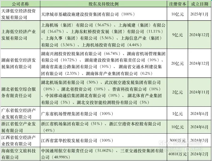 2024年以來,上海、湖南、天津、廣東、浙江、江西、海南等省份均成立了由地方國企控股的低空經濟公司。