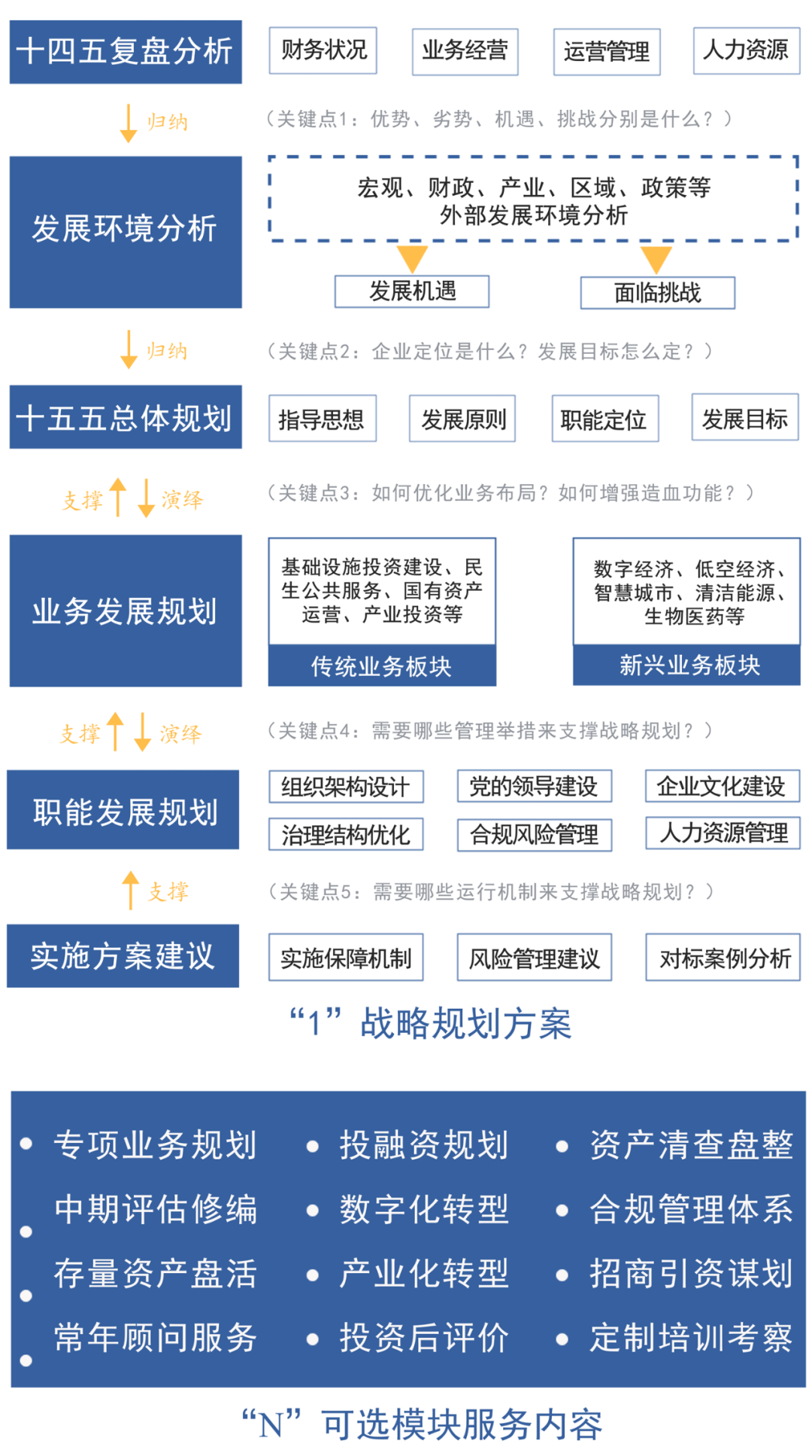 “十五五”是實現2035遠期目標承上啟下的五年,面對復雜多變的國內外局勢,國有企業“十五五”規劃向上需要承接國家各層面、各領域戰略規劃與目標分解,向下需要牽引企業內部各層級、各業務領域頂層設計與經營發展,其“十五五”規劃的編制不僅是企業自身持續高質量發展的戰略要求,更是響應國家戰略、促進經濟社會全面進步的重要舉措。新形勢下,國有平臺“十五五”規劃編制關鍵問題如下: