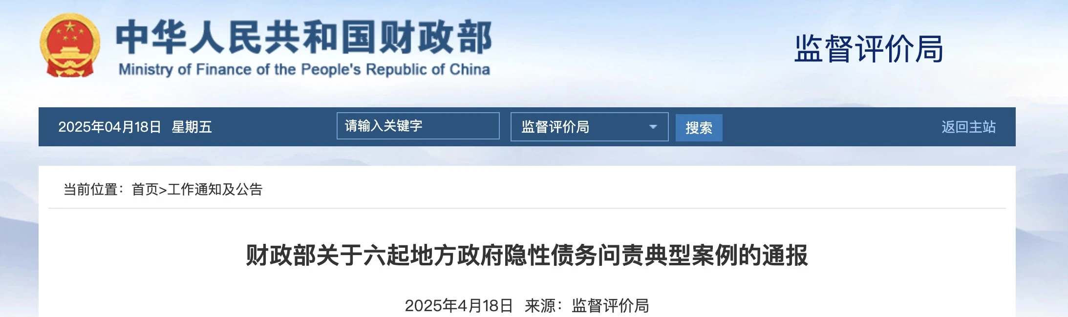 財政部通報六起地方政府隱性債務問責典型案例!
