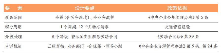 設(shè)計(jì)制度框架主要內(nèi)容如下表所示,涵蓋了定義、適用對象、使用范圍、記分周期、處理機(jī)制、政策依據(jù)等要素。