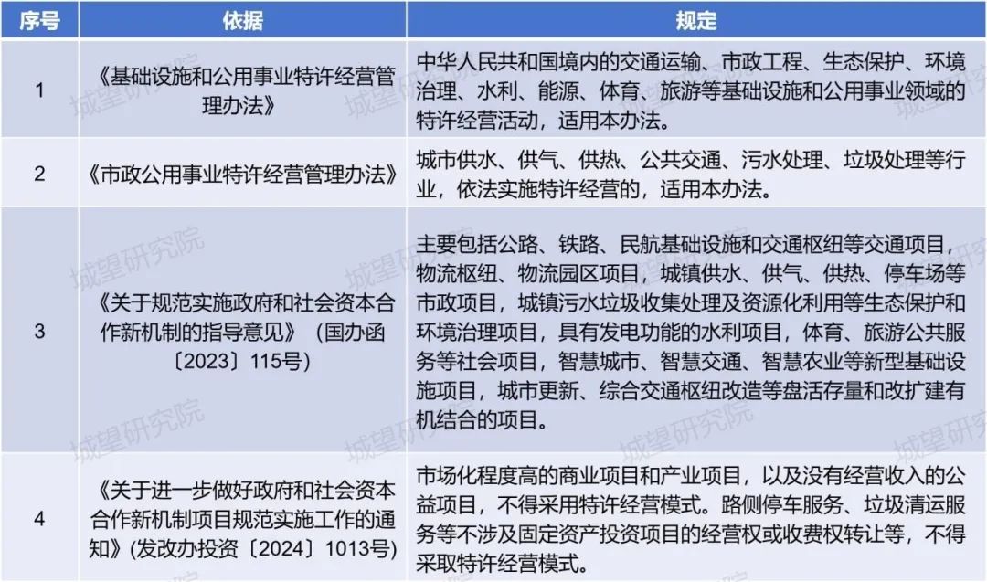 表2:特許經營權適用范圍政策一覽