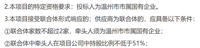 案例:溫州濱海凈水廠項目 項目采用BOT模式實施,區政府授權主管部門作為實施機構,實施機構通過競爭性磋商的方式選定特許經營者。項目通過設置特定條件將區縣級政府項目交由市級所屬國企實施,保留地方對優質資產的控制權。