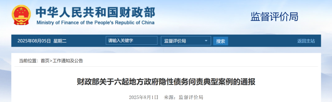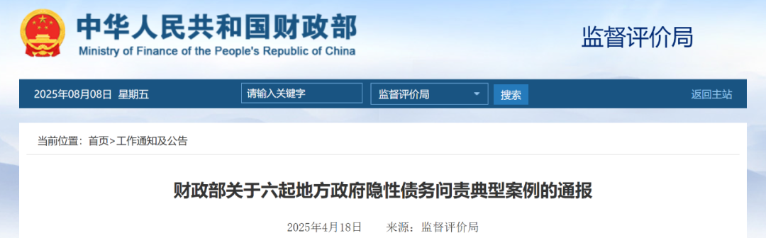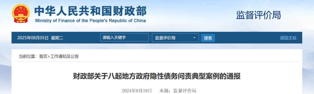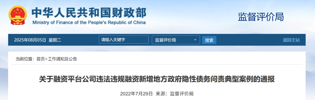 2022年7月:通報8起融資平臺公司違法違規融資新增地方政府隱性債務問責案例