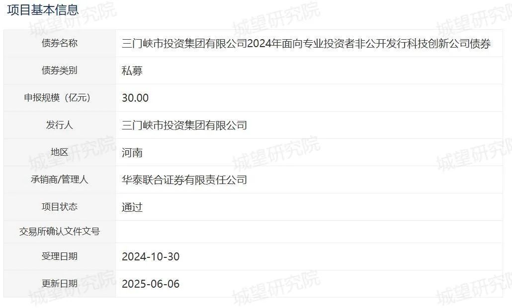 自今年5月7日債券市場科技板新政實施以來,科創債按下了加速鍵。近期,三門峽市投資集團有限公司(以下簡稱“三門峽市投資集團”)2024年面向專業投資者非公開發行科技創新公司債券項目獲深交所通過,該債券獲批規模30億,是2025年以來全國地市級主體獲批的最大單筆科技創新公司債!