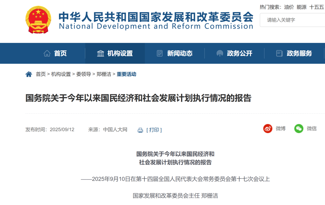 日前,在十四屆全國人大常委會第十七次會議上,受國務院委托,國家發展和改革委員會主任鄭柵潔作了關于今年以來國民經濟和社會發展計劃執行情況的報告。報告包括:國民經濟和社會發展“3個方面突出特點”、“6個方面工作成效”、“9個方面下半年工作部署”。