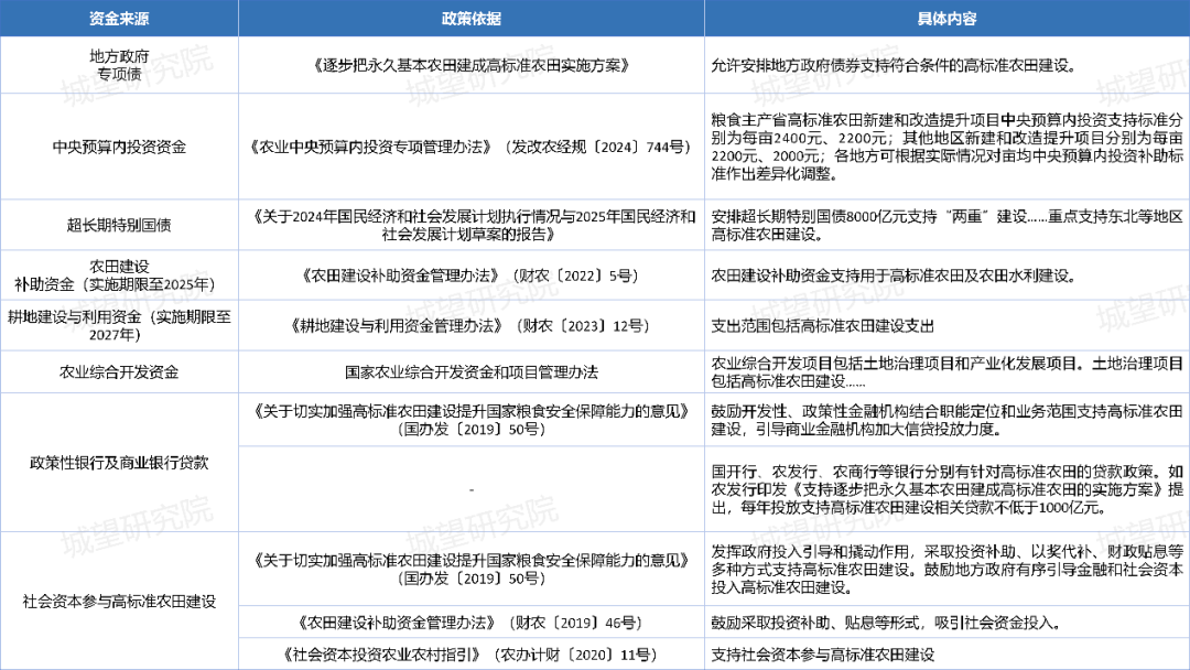 高標(biāo)準(zhǔn)農(nóng)田項(xiàng)目的資金來源以財(cái)政資金為核心,社會(huì)資本和金融工具為重要補(bǔ)充,各類資金需在“合法合規(guī)、專款專用”的前提下統(tǒng)籌使用。