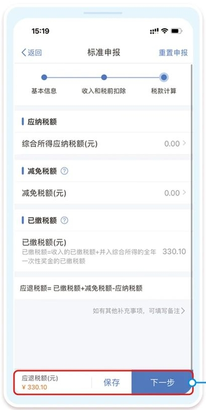 6、填寫完畢并核對無誤后點擊下一步,如有未退稅,點擊“申請退稅”。