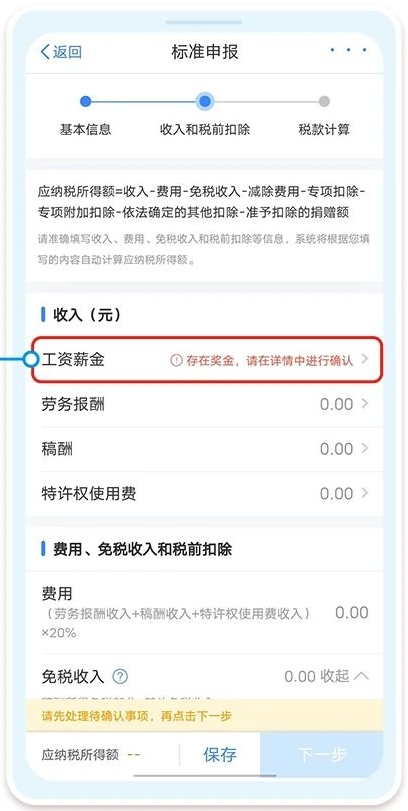 3、如有全年一次性獎金,系統會有紅字提示,點擊紅字提示。