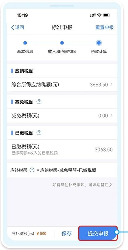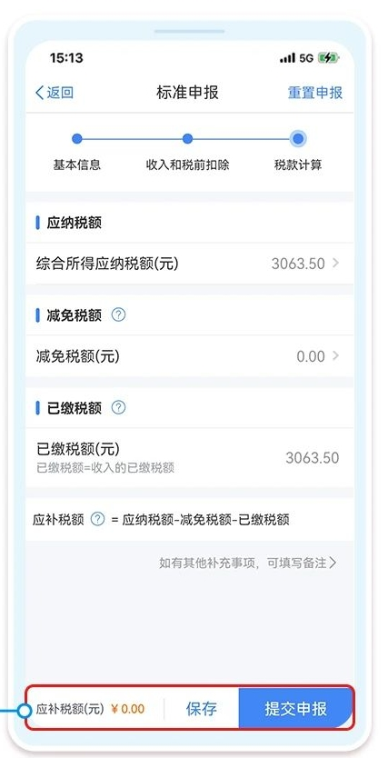 如匯算的結果為不補不退,直接點擊“提交申報”即完成了本次匯算清繳。